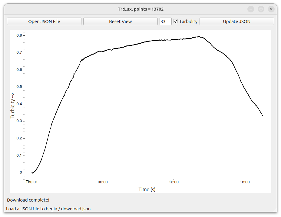 Developed for a student project, this meter has an LED and a linear light sensor to monitor the growth of bateria in an innoculated medium. An ESP32 relays the luminosity measurements to my server via MQTT